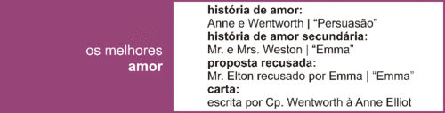 Em primeiro e obviamente a carta de Wenthwort para Anne Elliot. Sem palavras...