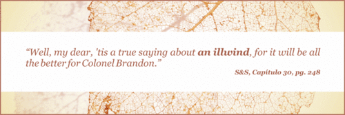 S&BS| "-Bom, minha querida, há um ditado muito certo acerca do vento mau, pois isto será muito bom para o coronel Brandon." Pg. 146