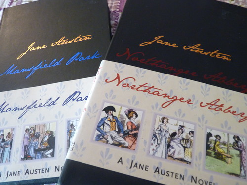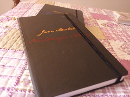 Eu fui escolher um presente para uma pessoa querida e, como sempre acontece quando vou a uma livraria, fui dar uma olhadela na prateleira de livros estrangeiros. Claro que os meus olhos buscam sempre, em primeiro lugar, pela nossa querida Jane. Tive uma agradável surpresa. Encontrei Mansfield Park e Northanger Abbey numa edição que me encheu os olhos e o coração de alegria. Tem de tudo o que eu gosto: capa e encadernamento minimalista, fonte "jane austen", dentro tem a letra num tamanho aceitável, paginação muito boa. Mas não só. Contém ilustrações ( o que eu achei lindo de morrer!). Para além disso, tem algumas rubricas de alguns pesquisadores e especialistas em Jane Austen. Já chega? Ainda tem mais... tem uma breve explicação da Inglaterra do tempo da Jane e uma "timeline" que contextualiza o que acontecia na vida da Jane e no mundo. Para além disso tudo, e não é pouco, o livro vem em formato de moleskine; coisa que eu a-m-e-i.