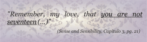 "Lembre-se, minha querida, de que você ainda não tem dezesseis anos.” (Razão e Sentimento, Capítulo 3 , pg. 16)