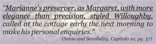 “Margaret, como acompanhante de Marianne, com maior elegância que precisão, acalmou Willoughby, que viera cedo, na manhã seguinte à casa para saber pessoalmente como ela passava.”(Sensibilidade e Bom Senso, Capítulo 9, pg. 36)